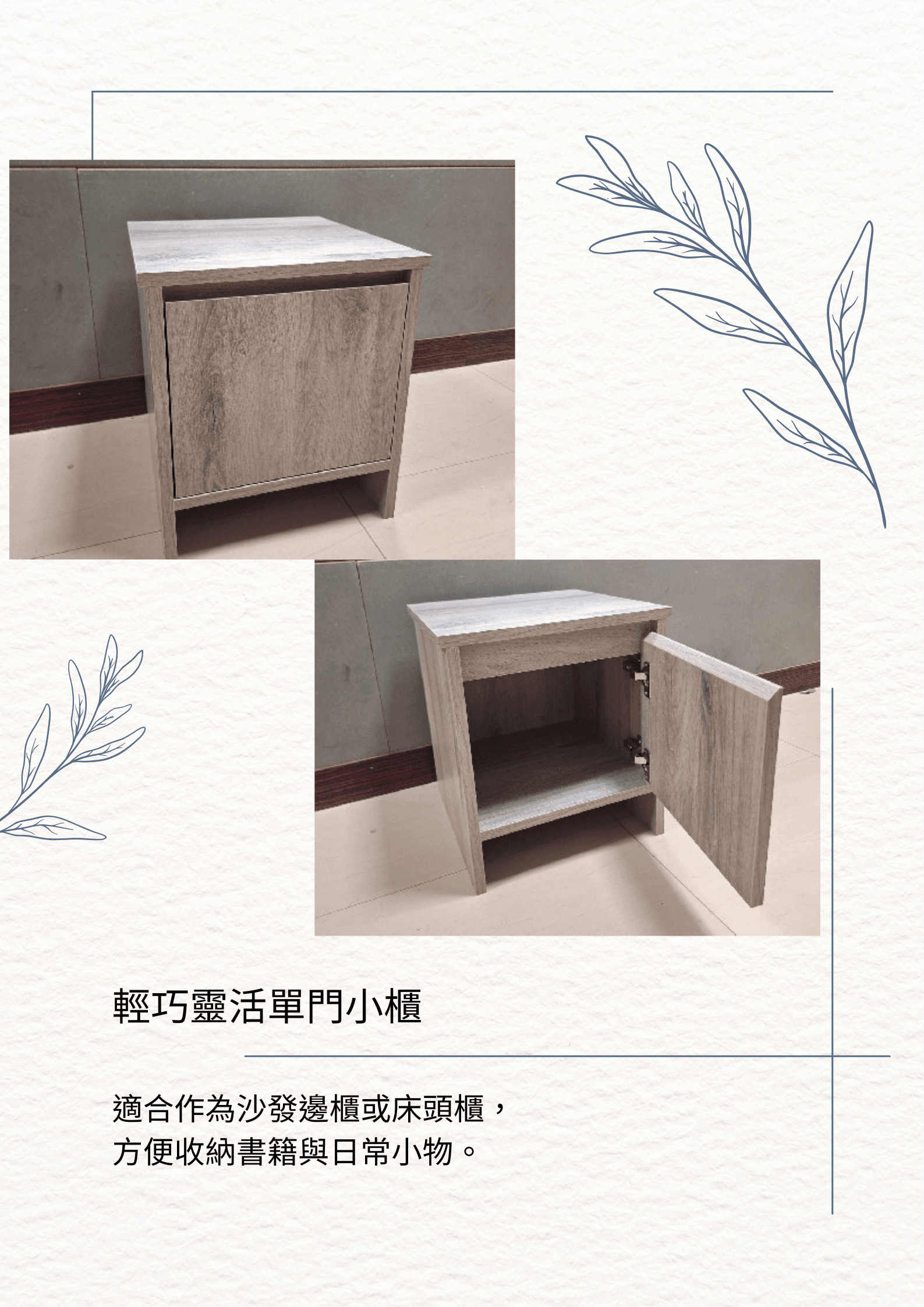 小巧輕便,適合擺放在沙發邊或床頭。極簡設計不占空間,卻能有效收納書籍、雜物或小配件,讓家中每個角落都整齊有序,簡單、實用又時尚。